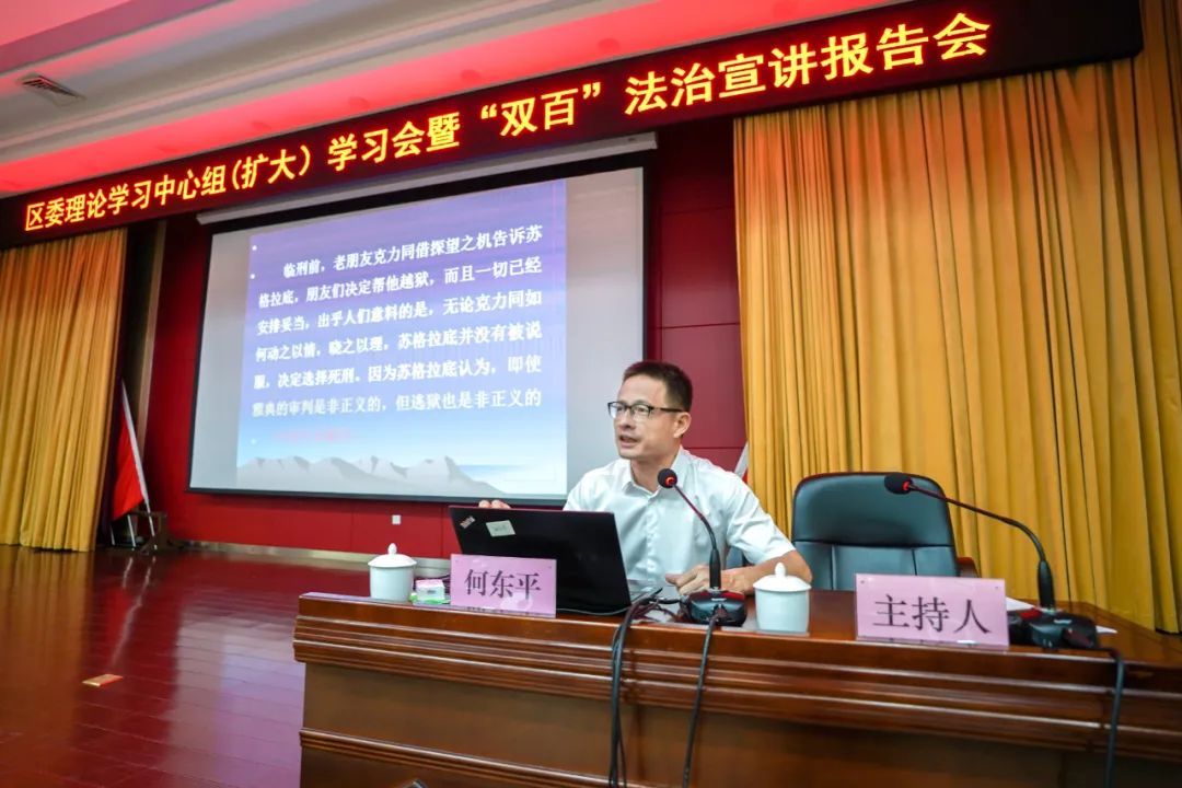 2022年8月30日,龙文区委理论学习中心组(扩大)学习会暨“双百”法治宣讲报告会在区政府召开,市法学会副会长、法治漳州研究中心主任何东平教授受邀作了题为《领导干部如何处理好法理和情理》的专题报告。