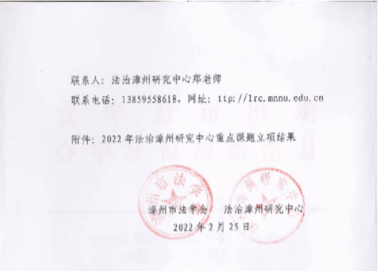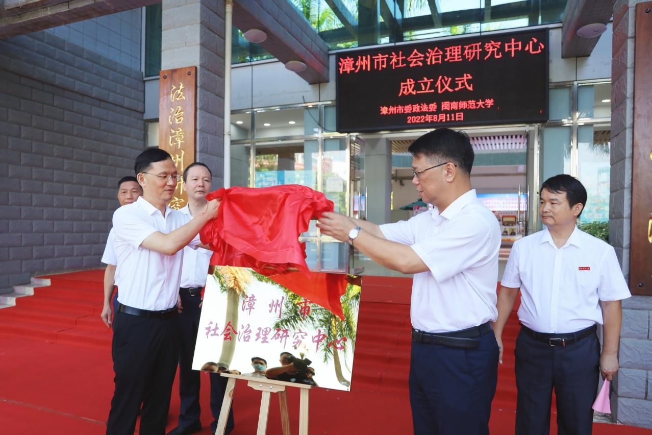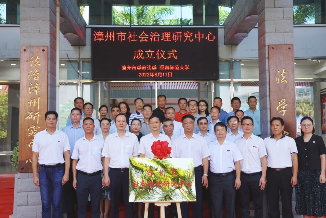 2022年8月11日,漳州市社会治理研究中心成立仪式暨“习近平法治思想研究之社会治理法治化”学术论坛在闽南师范大学博文楼举行。漳州市委常委、政法委书记张慧德出席并致辞。我校校长李顺兴出席并和张慧德共同为“漳州市社会治理研究中心”揭牌。