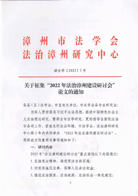 为深入学习贯彻党的二十大精神,深入学习贯彻习近平法治思想,2022年12月19日上午,由漳州市法学会、法治漳州研究中心主办的“2022年法治漳州建设研讨会”在漳州宾馆顺利召开。市委常委、政法委书记张慧德出席会议并讲话,闽南师范大学党委常委、纪委书记戴福康致辞,市委政法委分管日常工作副书记李铁军同志通报表彰2022年度法治漳州建设研讨入选论文作者并颁奖。漳州市委政法委,公检法司,人大内司委等相关领导及论文作者150余人参加研讨会。