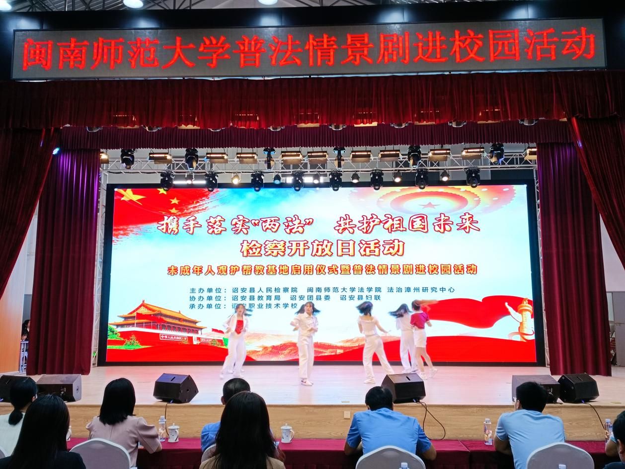 2022年5月26日下午,由市法学会、法治漳州研究中心和诏安县人民检察院联合主办,诏安县教育局,诏安团县委和诏安县妇联协办,诏安职业技术学校承办的未成年人观护帮教基地启用仪式暨普法情景剧进校园活动在诏安职业技术学校举行。