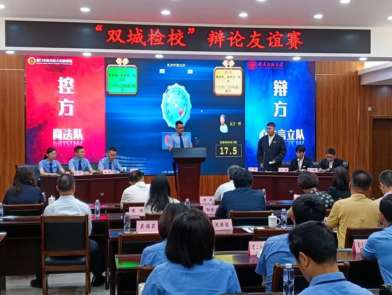 2022年5月19日,厦门市集美区检察院举论辩友谊赛行,闽南师范大学心言立队代表参赛,辩手们通过论辩技巧、逻辑思维和业务水平的较量,展开了一场视听盛宴。