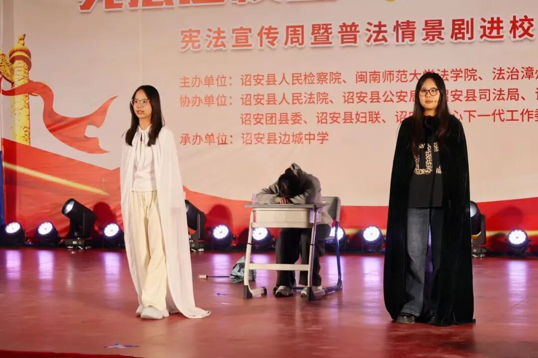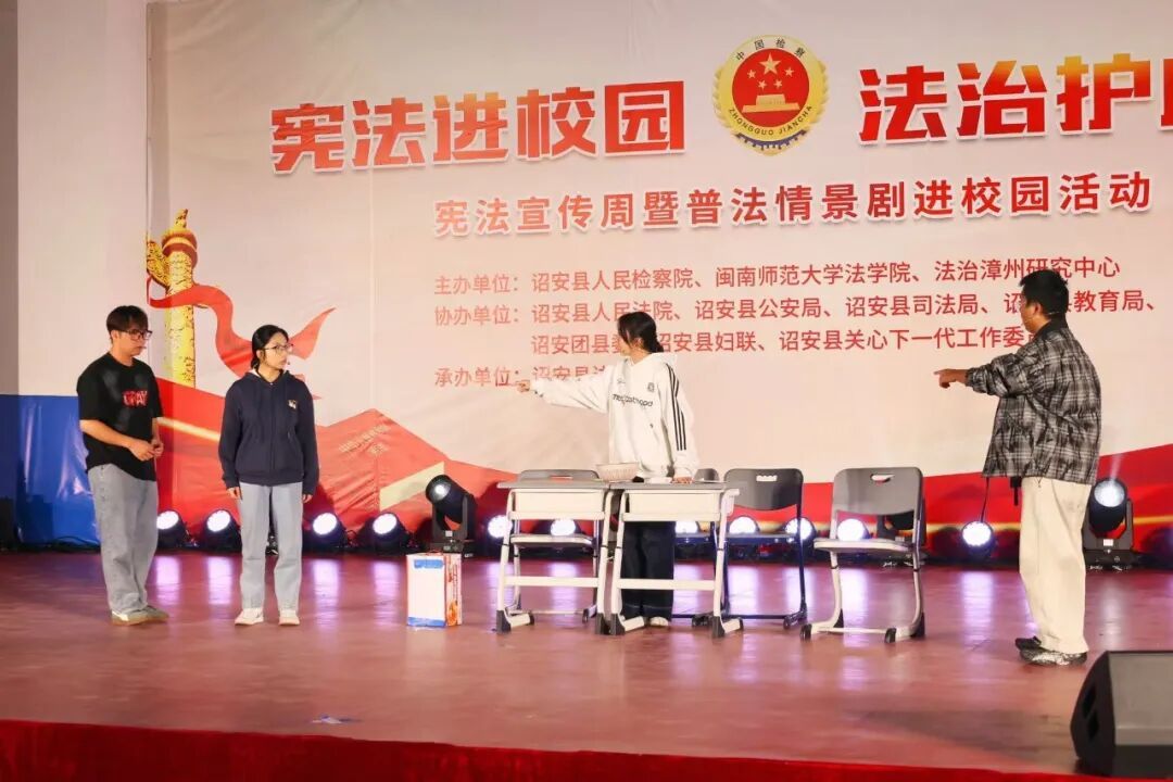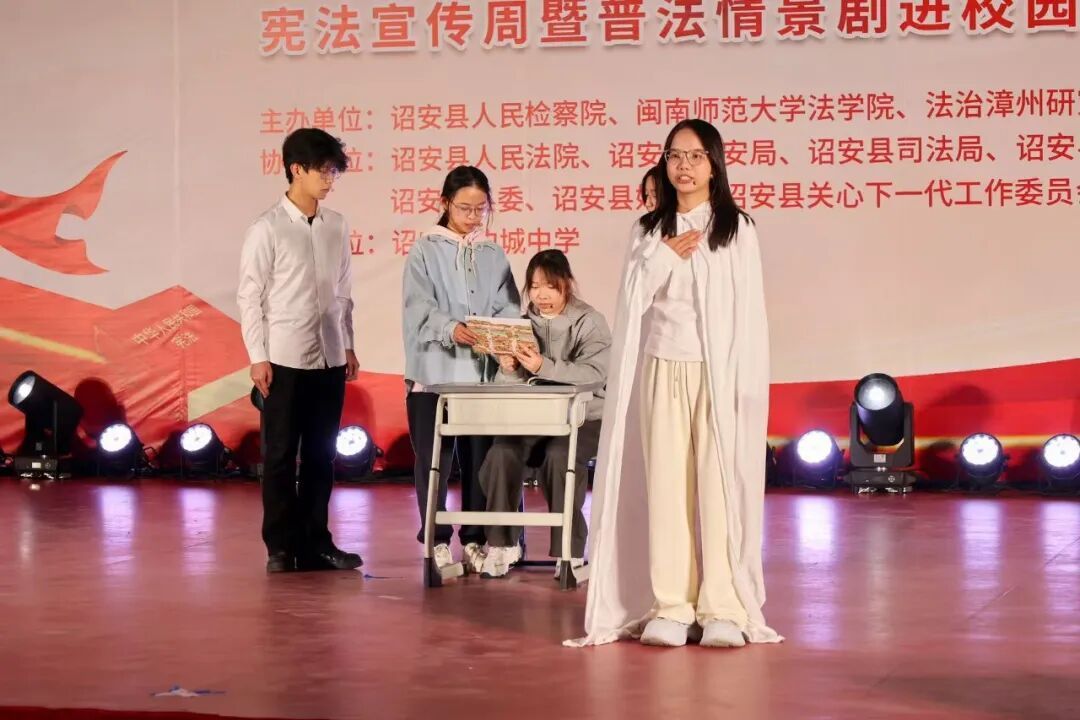 2025年12月4日是我国第12个国家宪法日,由诏安县检察院、闽南师范大学法学院、法治漳州研究中心主办的“宪法进校园,法治护成长”普法情景剧在诏安县边城中学精彩上演!闽南师范大学法学院与诏安边城中学学生一同带来了歌唱、朗诵、舞蹈、普法情景剧等精彩表演。